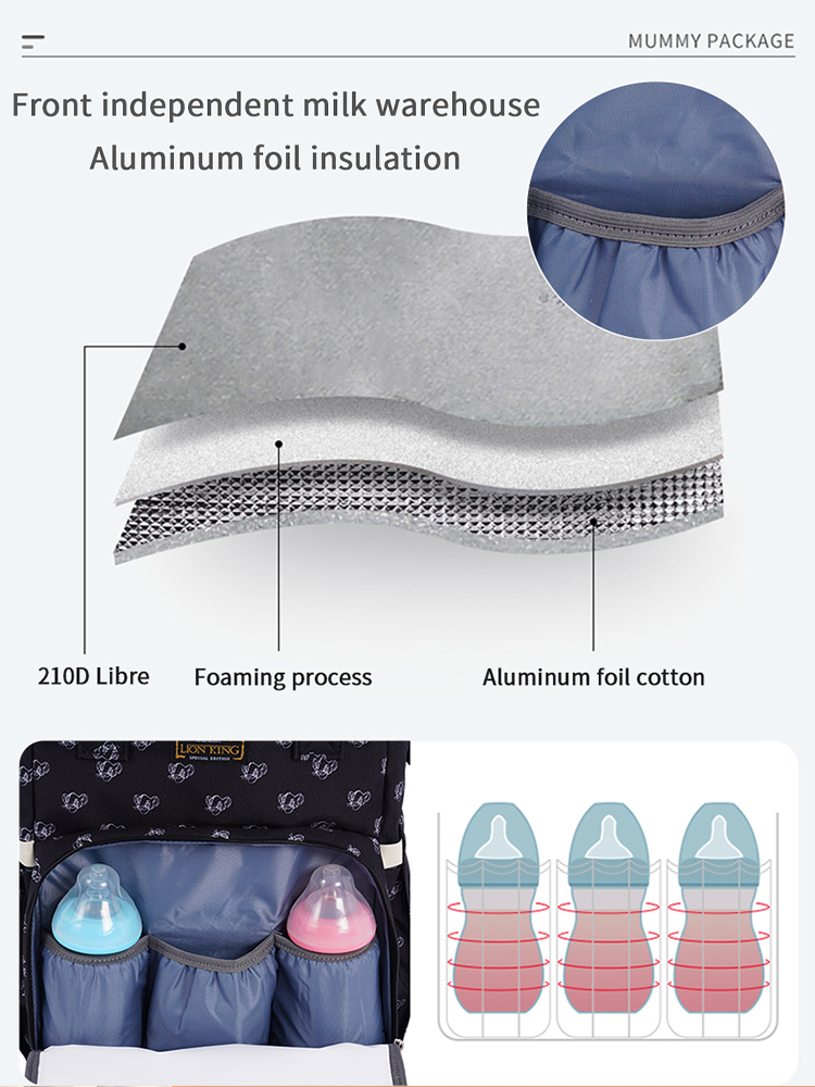Disney Diaper Bag Backpack With Changing Bed Mommy Baby Stroller Bag Large Capacity Nappy Maternity Care Women Bag The King Lion