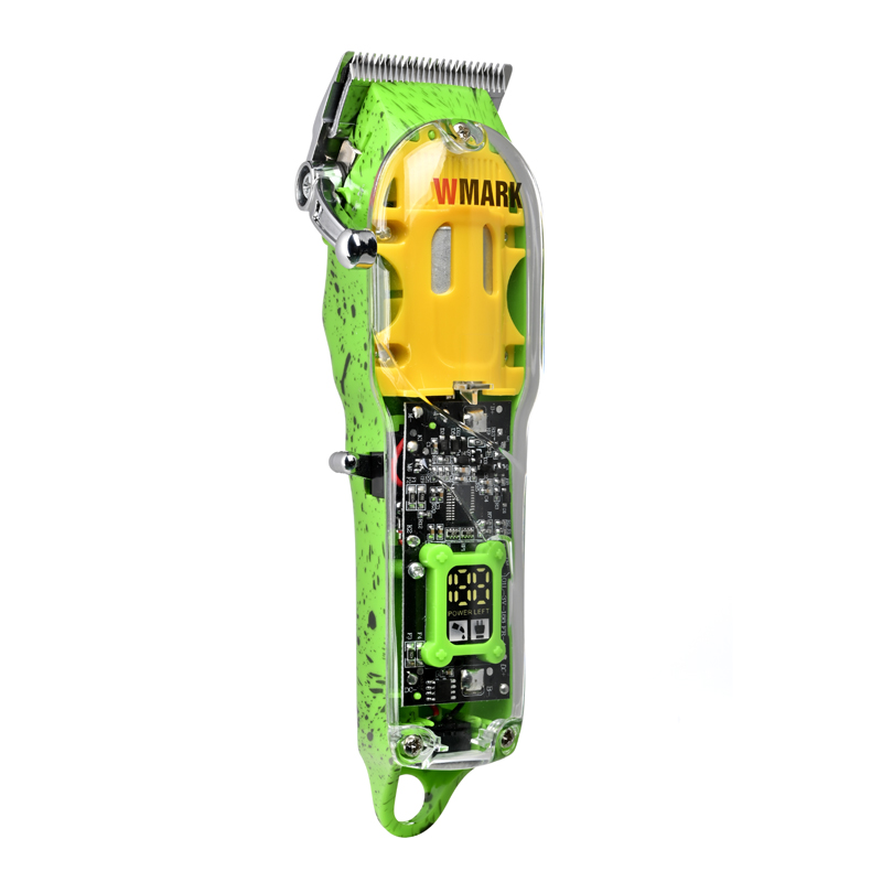 2021 WMARK NG-408 Transparent Style green color Professional Rechargeable Clipper Cord & cordless Hair Trimmer with fade blade