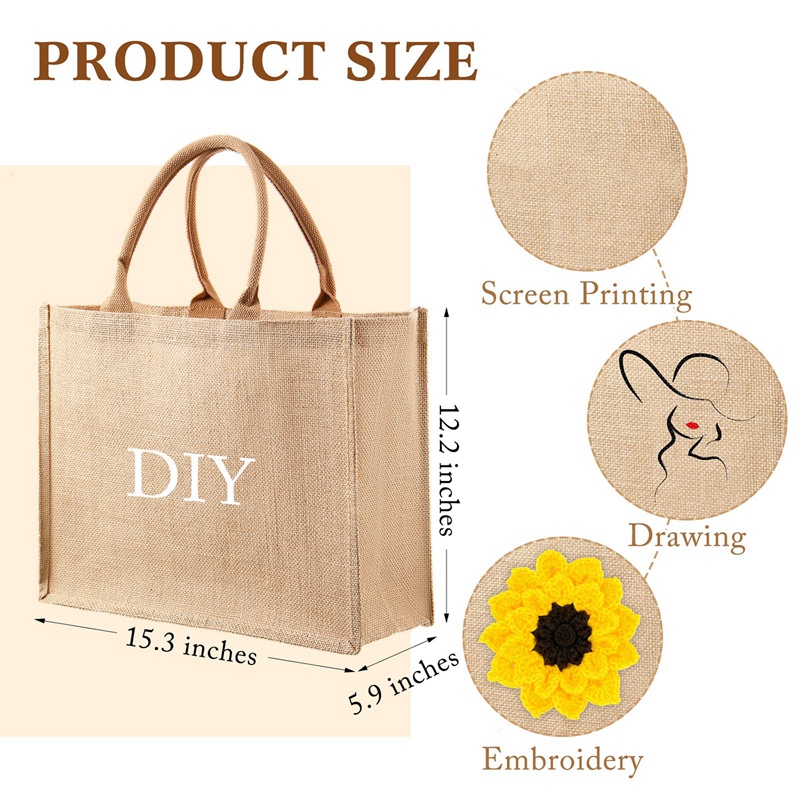Be the first to review “5 Pack Burlap Tote Bag Set Jute Tote Bags With Handles Blank Large Burlap Reusable Grocery Bags For Bridesmaid” Cancel reply