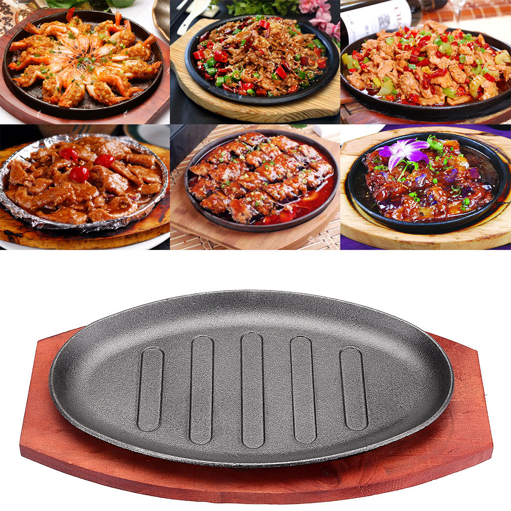 Steak Set Elaborate Barbecue Fajita Sizzling Platter Plate Outdoor Pans Wear-resistant Authentic Cooking Holder 12 inch