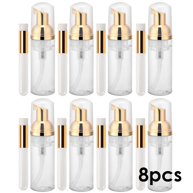 8 Set Eyelash Cleansing Mousse Shampoo 60ml Foam Cleanser with Brush for Lashes Extension Empty Logo Lash Accessories Wholesale – Gold Clear