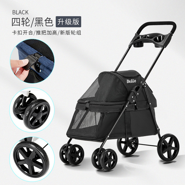 Pet Stroller Lightweight Dog Cat Cart Four-wheel Shock Absorption Folding Dog Transport Cart Breathable Stroller Outdoor