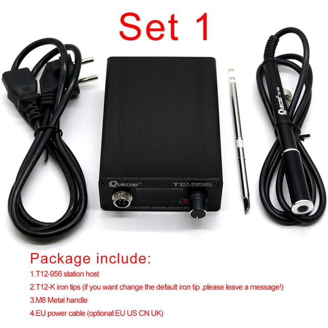 QUECOO T12-956 Soldering Digital Station Electronic Soldering iron OLED 1.3inch with Black M8 handle and T12 soldering iron tips