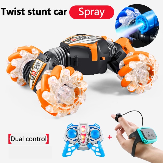 Rc Stunt Car 2.4G Radio Gesture Induction Spray Music Light Stunt Car Remote Control Car 1:24 Off-Road Watch Control Boy Toys – Dual control-Spray-10