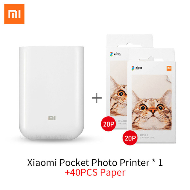 Global Version Xiaomi mijia AR Printer 300dpi Portable Photo Mini Pocket With DIY Share 500mAh picture pocket printer – Add 40 Pcs