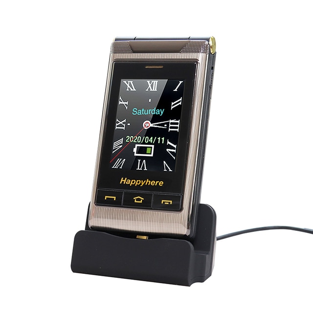 Happyhere F7 flip cell phones 3.0″ touch screen unlocked celular speed dial SOS FM radio senior Push-button cheap mobile phone