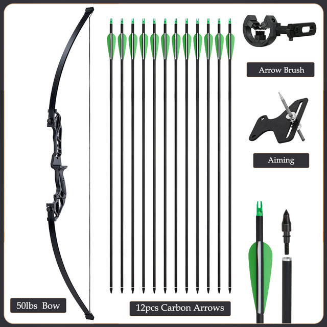 20/30/40/50lbs Archery Bow Recurve Take Down Straight Bow 12pcs Mixed Carbon Arrows Quiver Outdoor Sport Shooting Practice Bow