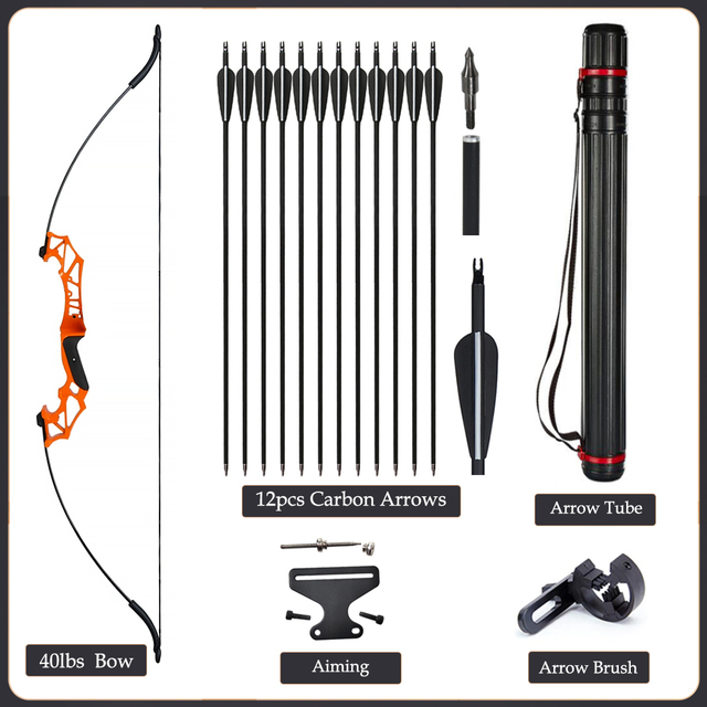 20/30/40/50lbs Archery Bow Recurve Take Down Straight Bow 12pcs Mixed Carbon Arrows Quiver Outdoor Sport Shooting Practice Bow