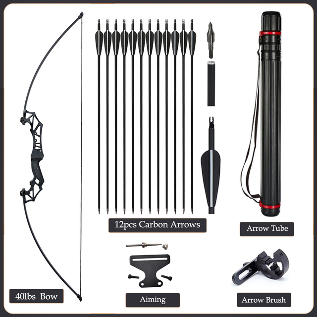 20/30/40/50lbs Archery Bow Recurve Take Down Straight Bow 12pcs Mixed Carbon Arrows Quiver Outdoor Sport Shooting Practice Bow