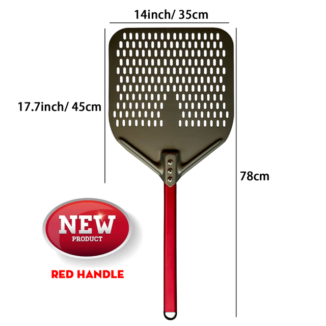 SHANGPEIXUAN 16/14/13/12 Inch Perforated Pizza Peel Rectangular Pizza Shovel Aluminum Hard Coating Pizza Peel Paddle Short Tool – Red Handle 14inch