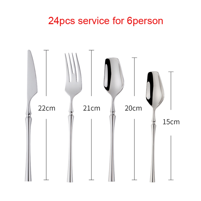 24pcs/lot Korean Food Portable Cutlery 304 Stainless Steel Table Fork Knife Spoon Dinner Set Dinnerware Gold Tableware Sets